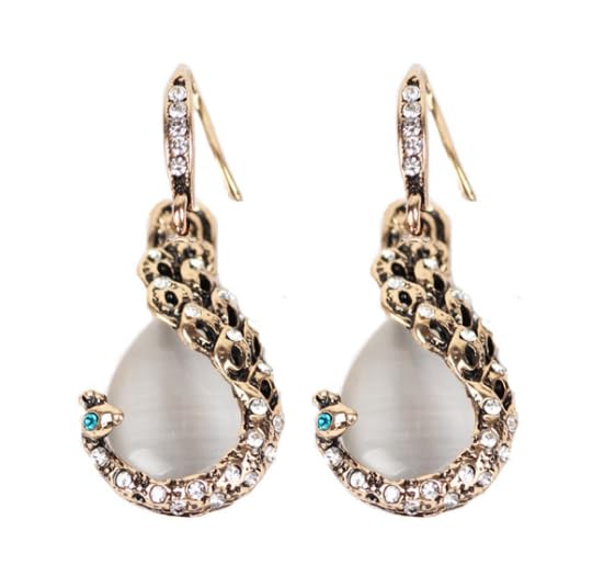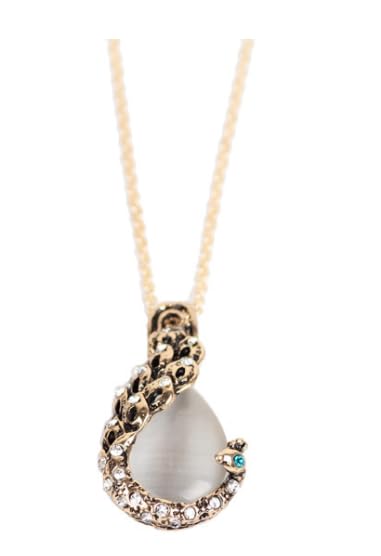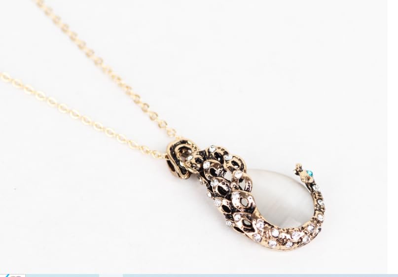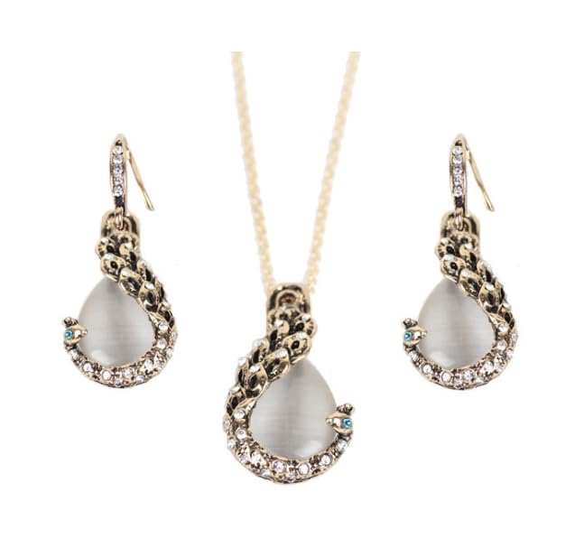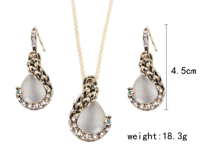 Generic - طقم عقد واقراط من الكريستال واللؤلؤ للنساء اكسسوار الاحجار الكريمة الفضية بتصميم طاووس معدن ذهب أبيض