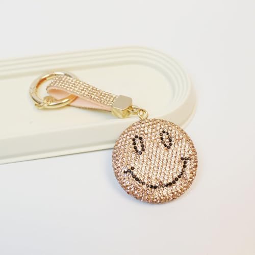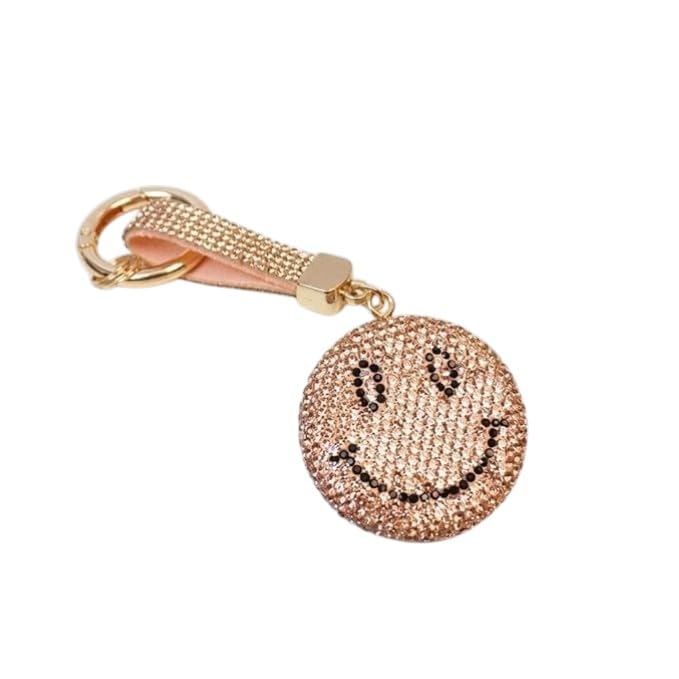 Generic - سلسلة مفاتيح بتصميم وجه مبتسم مرصع بالكريستال، ذهبي وردي، قلادة حقيبة للنساء، نمط كوري