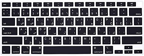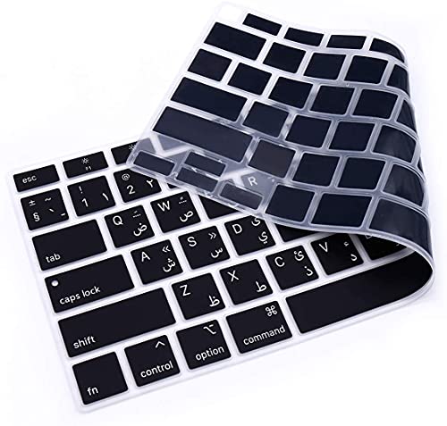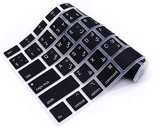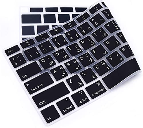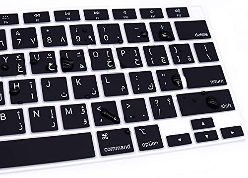CrystalGuardMB - غطاء لوحة مفاتيح من كريستال جارد ام بي، متوافق مع آبل ماك بوك اير 13 ريتينا (من 2018 إلى 2020) A2179 وآبل ماك بوك اير 13 (M1، 2020) A2337 إصدار أمريكي (أسود - حروف عربية)