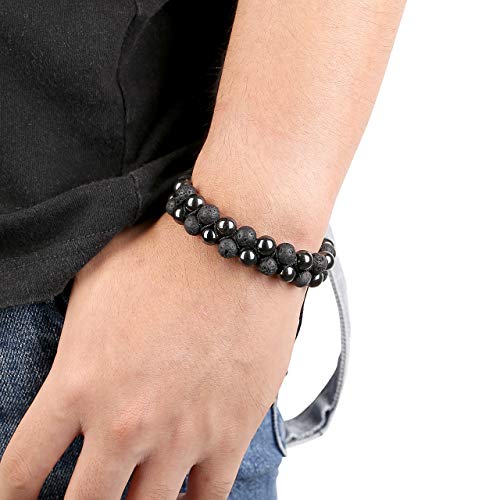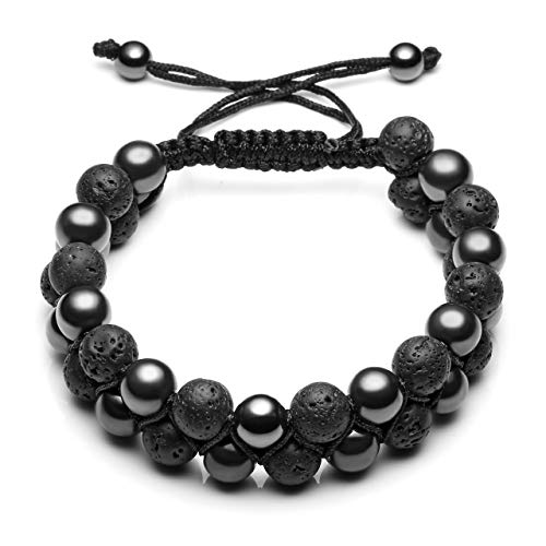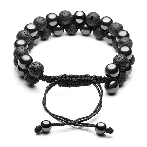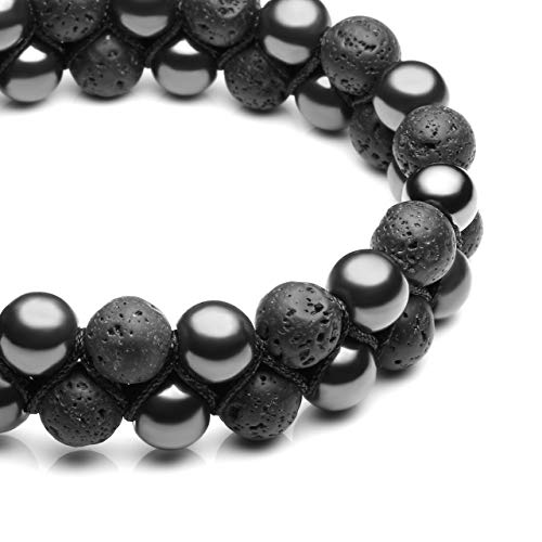 CrystalTears - سوار للرجال من الدموع الكريستالية الاحجار - مع خرز عين النمر هيماتيت والحجر الطبيعي يوجا الزيوت الاساسية اساور مجدولة طبقتين الخرز