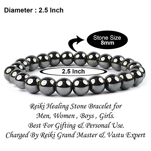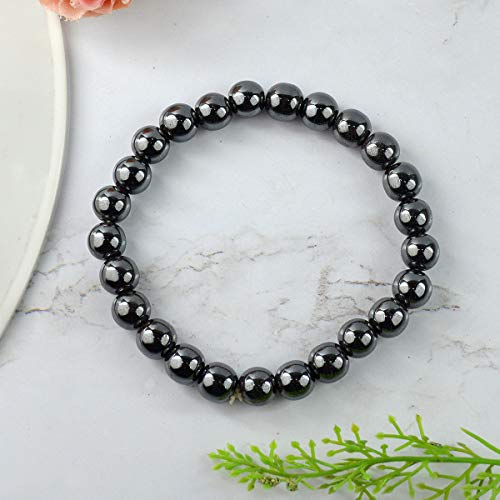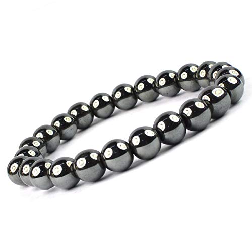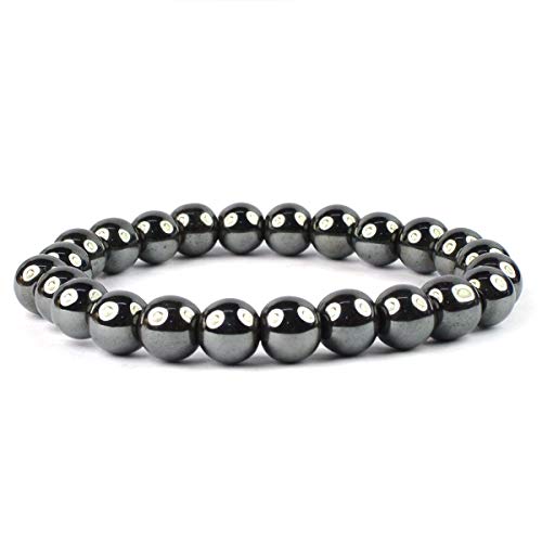 Crystu - سوار حجر الدم الطبيعي من حجر الكريستال 8 ملم، سوار خرز دائري الشكل (اللون: فضي)، للبالغين من الجنسين