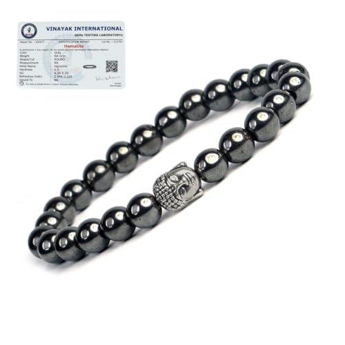 Crystu - سوار من حجر الدم الطبيعي مع رأس بوذا الكريستال خرز دائري 8 ملم لعلاج الريكي وحجر الشفاء الكريستالي اللون: متعدد احجار كريستال طبيعية الهيماتايت للبالغين الجنسين