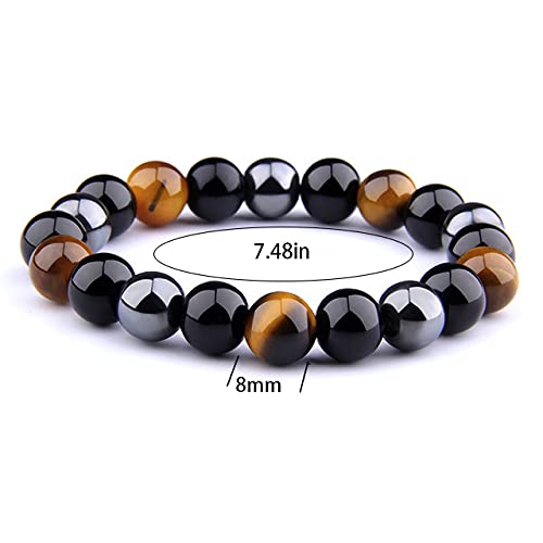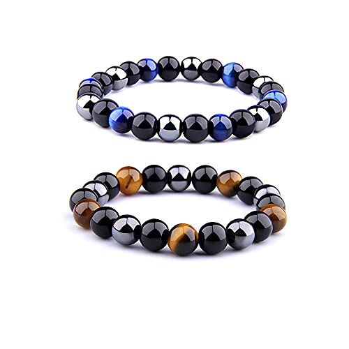 CSIYANJRY99 - سوار خرز مغناطيسي بلون اسود مضاد للتورم للرجال والنساء من سيانجري 99 معصم مصنوع حجر عين النمر لتخفيف التوتر وممارسة اليوجا قطعتين adjustable