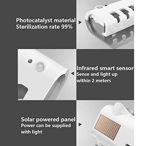 - 【ألواح شحن بالطاقة الخفيفة: توفر الألواح الشمسية المتطورة غير المتبلورة المصنوعة من السيليكون الرقيق أي نوع من الإضاءة لحامل فرشاة الأسنان بالأشعة فوق البنفسجية، بما في ذلك ضوء النهار الطبيعي والإضاءة الداخلية، مما يلغي الحاجة إلى الضوء المباشر ويطيل وقت تشغيل حامل فرشاة الأسنان المعقم. يمكن أن يعمل لأكثر من أربعة أشهر وحتى أطول بعد الشحن الكامل.
