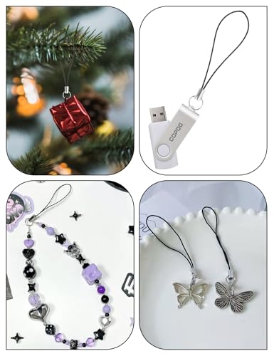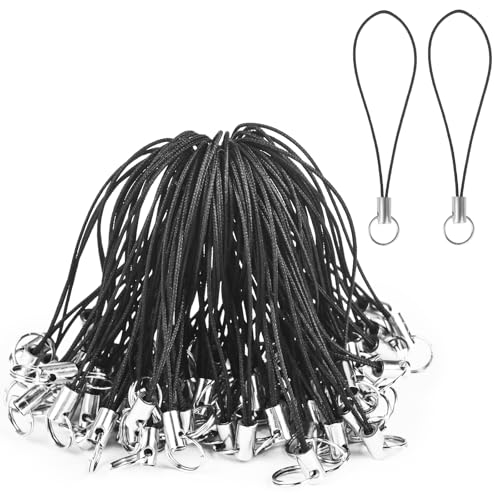 CUALFEC - 100 قطعة من حبل الموبايل، حزام لاريات للجوال، حزام حلقي مقسم لتعليق التعليقات، سلسلة مفاتيح بمنفذ USB - اسود