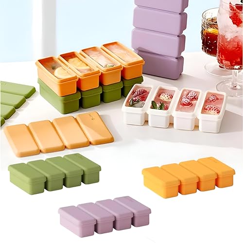 Generic - قالب مكعبات سيليكون متعدد الألوان بـ 4 أقسام كبيرة مرنة وتصميم سهل الفك، مثالي لتجميد المرق أو الصلصات أو الفواكه أو مكعبات الثلج الأنيقة التي تعزز تجربة مشروبك