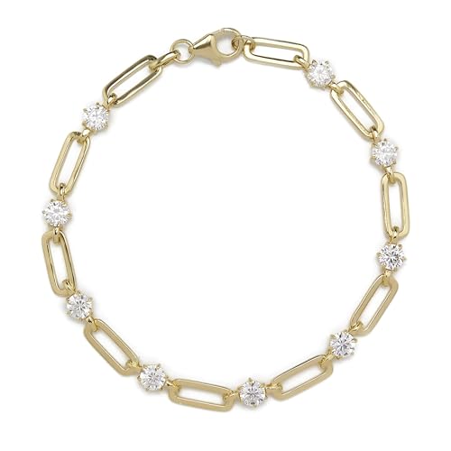 Generic - اساور زركونيا مكعب - سوار معصم مطلي بالذهب 7 انش مع وصلة تمديد 1.2 انش، نمط سلسلة مشبك ورق، هدية عصرية مثالية للنساء والفتيات