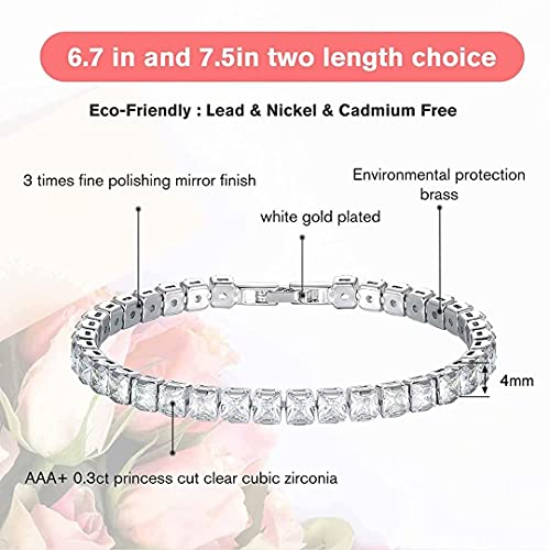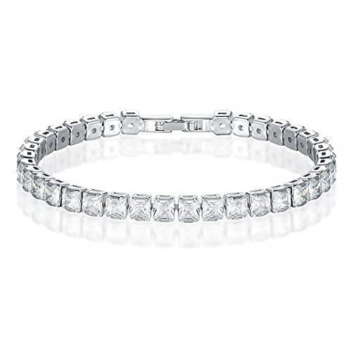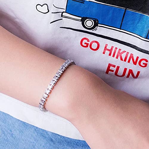 generic - اساور تنس مرصعة بحجر الزركونيا المكعب للنساء، سوار دائري مطلي بالذهب الابيض مرصع باحجار الراين والكريستال