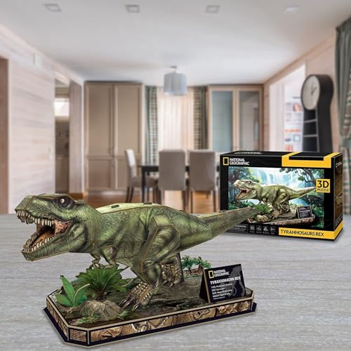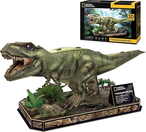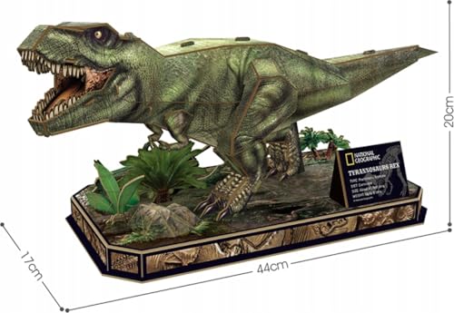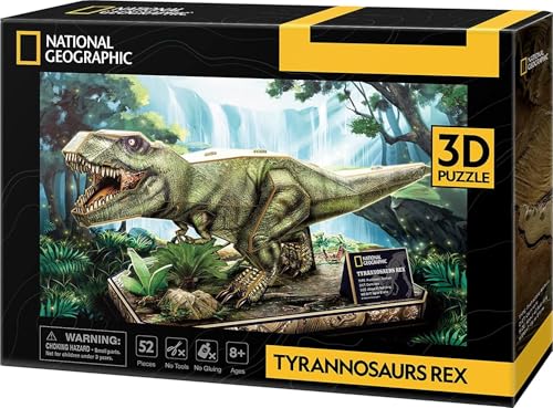 CubicFun - لعبة بازل ثلاثية الأبعاد تركيب ديناصور تيرانوصور ريكس بتصميم ناشيونال جيوغرافيك من كيوبيك فن، 52 قطعة، متعددة الألوان، DS1051H