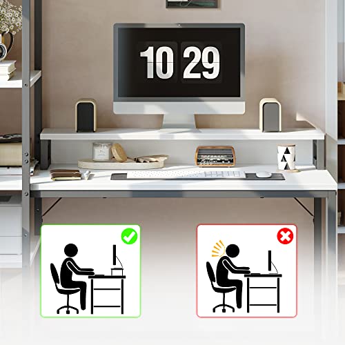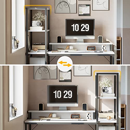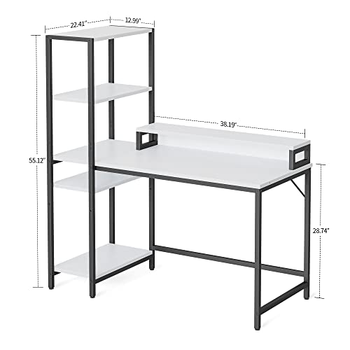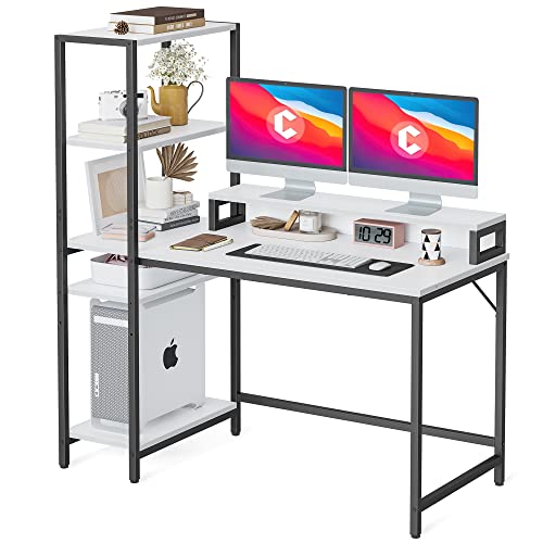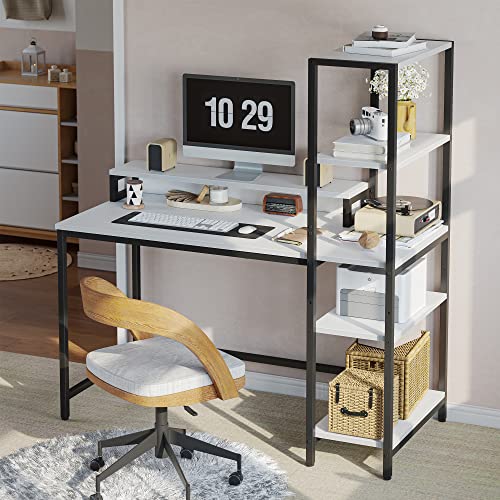 CubiCubi - مكتب كمبيوتر من كيوبي كيوبي مقاس 130 سم بأرفف تخزين قابلة للعكس وحامل شاشة، مكتب منزلي، مكتب كتابة، مكتب حديث، طاولة للعمل وللدراسة، أبيض