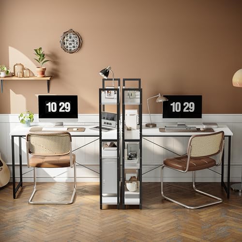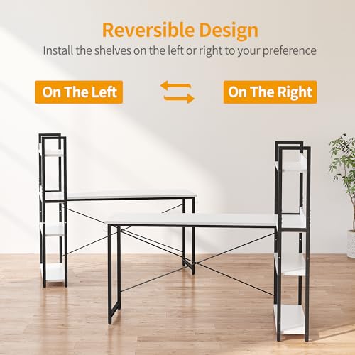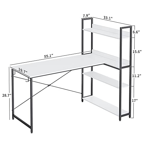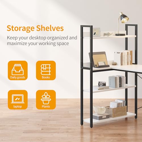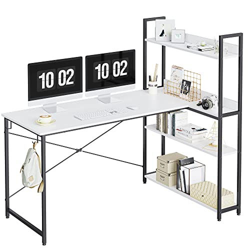 CubiCubi - مكتب كمبيوتر مع ارفف بسعة تخزين 1.4 متر من كوبي صغير على شكل حرف L للمنزل والمكتب والكتابة أبيض