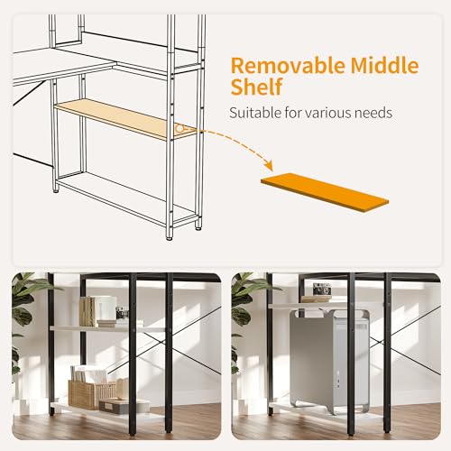 - مكتب كمبيوتر عملي مع رفوف: المكتب مكون من 3 أرفف تخزين، يمكنها تخزين مختلف الأغراض بكفاءة.