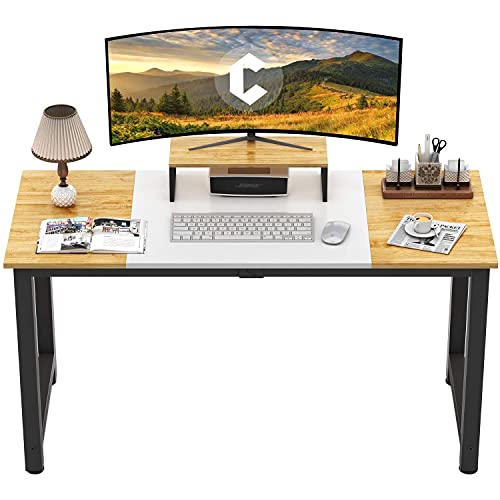CubiCubi - مكتب كمبيوتر للعمل من المنزل 55 بوصة، ترابيزة كتابة للدراسة، مكتب كمبيوتر بتصميم عصري بسيط بلوحة تركيب، ابيض وبني جوزي من كوبي كوبي