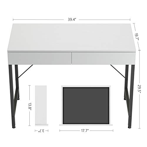 CubiCubi - مكتب كمبيوتر صغير من كوبي كوبي، مقاس 102 سم، مزود بـ 2 درج للتخزين، مناسب للمنزل والمكتب والكتابة، ومناسب كطاولة للمكياج، لون أبيض