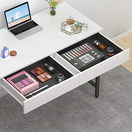 - 2 درج للاستخدام المنزلي والمكتبي: تصميم 2 درج يمكن أن يوفر مساحة كبيرة على سطح المكتب للعمل والترفيه. يتناسب مكتب الكمبيوتر الحديث والمعاصر هذا بشكل مثالي مع مكتبك المنزلي مما يوفر مساحة عمل واسعة وسعة تخزين. يمكن أن يستخدم أيضًا كطاولة مكياج.