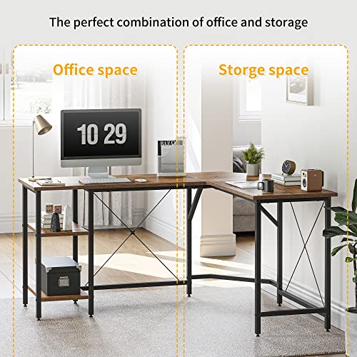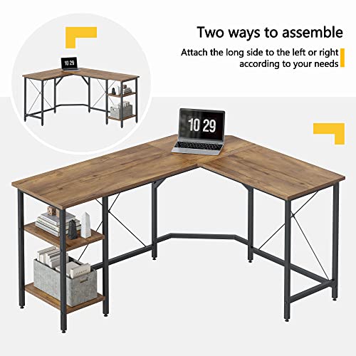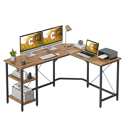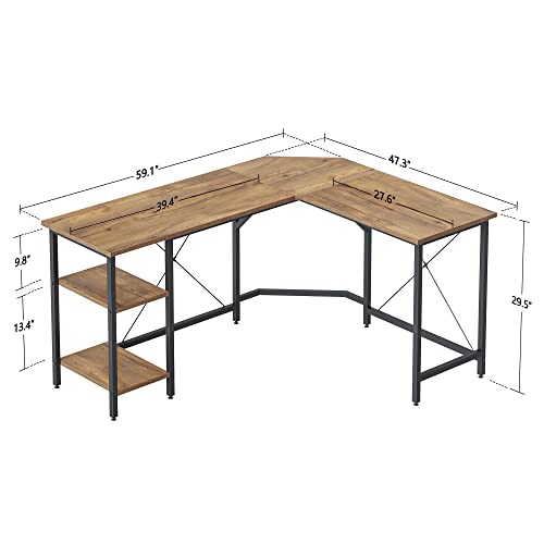 CubiCubi - مكتب كمبيوتر على شكل حرف L من كوبي كوبي، مكتب ألعاب قابل للاستخدام على الوجهين مقاس 1.50 متر مع ارفف تخزين، مكتب زاوية للمكتب المنزلي، مكتب عصري موفر للمساحة وسهل التجميع من خشب التنوب