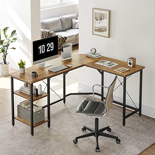 • تصميم عصري: هذا المكتب المصمم على شكل حرف L والمزود بأرفف من كوبي كوبي يوفر لك مكتبًا أنيقًا بتصميم جيد
