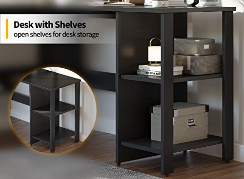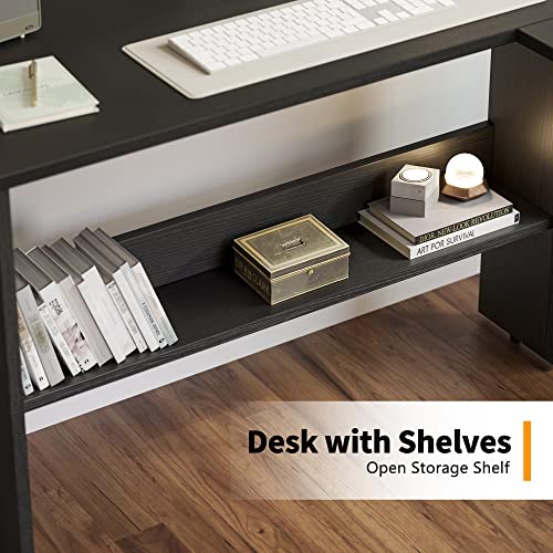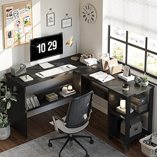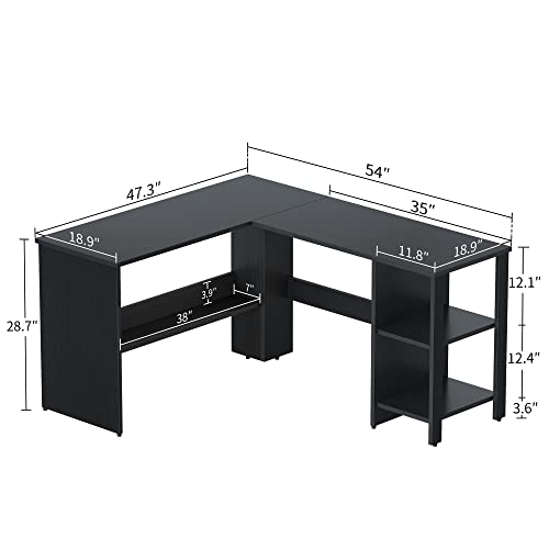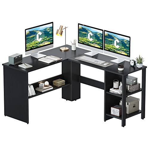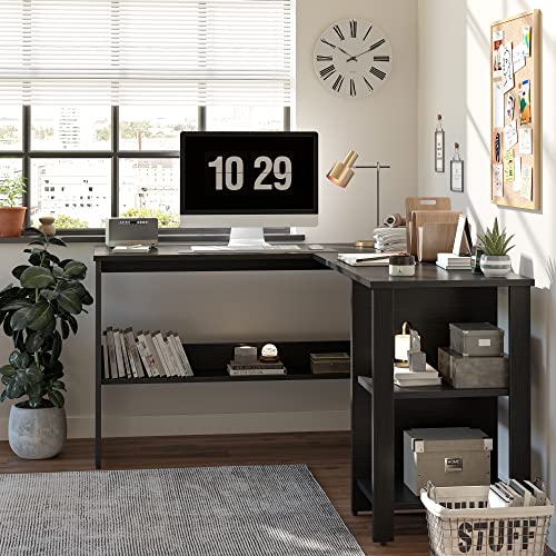 CubiCubi - مكتب كمبيوتر زاوية على شكل حرف L بأرفف تخزين للعمل وللمكتب المنزلي وللدراسة من كيوبي كيوبي، 138 سم، لون أسود
