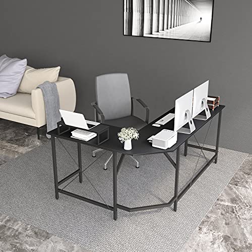 CubiCubi - مكتب زاوية للكمبيوتر على شكل حرف L من كوبي كوبي، طاولة العاب للمكتب المنزلي، مكان عمل متين للكتابة مع طاولة صغيرة، موفر للمساحة، سهل التجميع