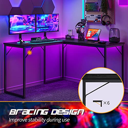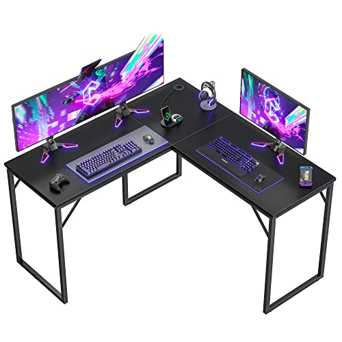 CubiCubi - مكتب ألعاب على شكل حرف L من كوبي كوبي مقاس 1.3 متر، مكتب زاوية للكمبيوتر مقاس 1.3 متر، محطة عمل عصرية للمنزل والمكتب والدراسة والكتابة، موفر للمساحة، سهل التجميع، أسود