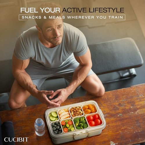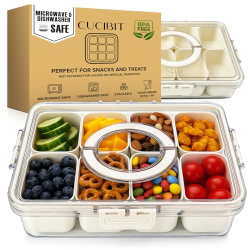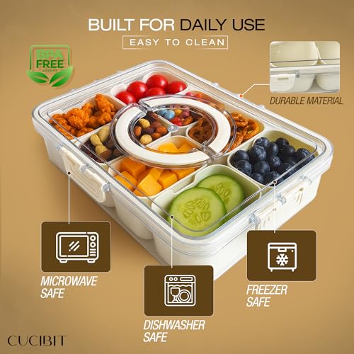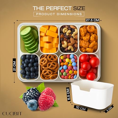 CUCIBIT - صندوق وجبات خفيفة من كوسيبيت مع 8 مساحات تخزين (10 × 6.5 سم)، خالي من البيسفينول ايه، امن للاستخدام في الميكروويف وغسالة الصحون، حاوية طعام قابلة للتكديس