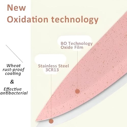- مجموعة من 6 قطع: تتضمن المجموعة سكين شيف مقاس 8 بوصة، وسكين خبز 8 بوصة، وسكين صغير 8 بوصة، وسكين تقشير 3.5 بوصة، ومقص، ومقشرة، مما يجعلها مجموعة كاملة ومتعددة الاستخدامات للمطبخ.