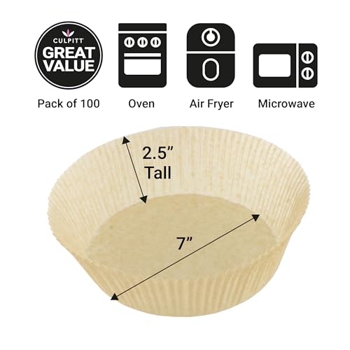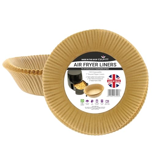 Culpitt - بطانات قلاية هوائية دائرية غير لاصقة للاستعمال مرة واحدة، مصممة لنينجا وتيفال وتاور وسالتر وراسل هوبز، عبوة من 100 قطعة صنعت في المملكة المتحدة من كولبيت