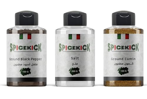 Spicekick - كمون مطحون 130 جرام + ملح طعام ناعم 290 جرام + فلفل اسود مطحون 150 جرام من ( SPICEKICK )