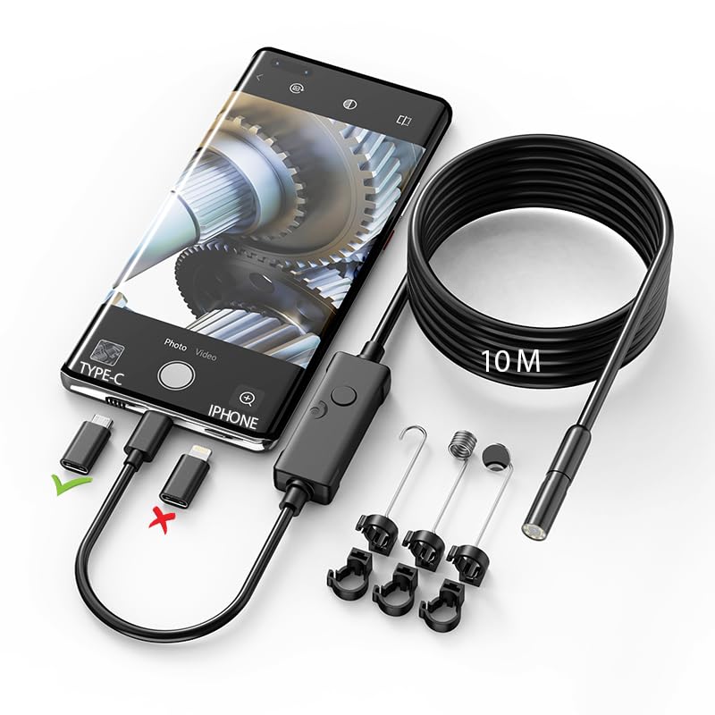 - استخدامات واسعة: تناسب كاميرا المنظار مجموعة متنوعة من السيناريوهات، مثل فحص داخل السيارة أو حول المحرك فحص داخل الأنابيب وكشف العفن والأسلاك في المنازل وتحديد مجاري المياه وفحص أنظمة التكييف وكل الأماكن التي يصعب رؤيتها أو الوصول إليها.