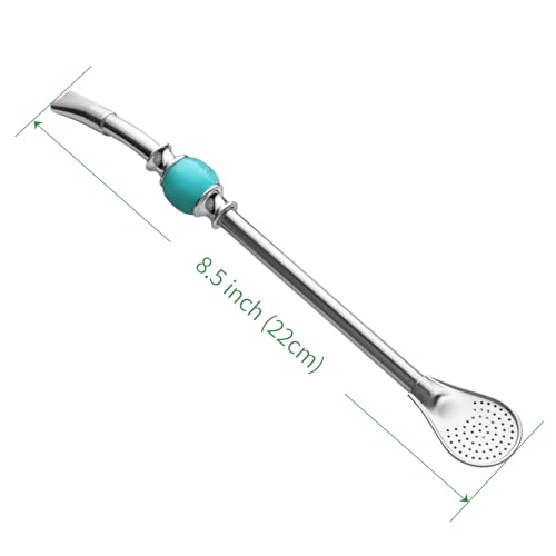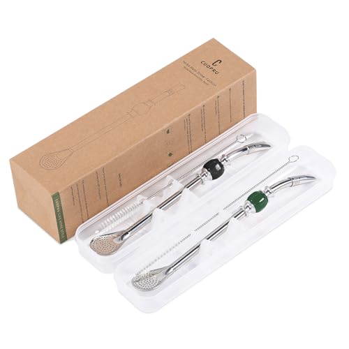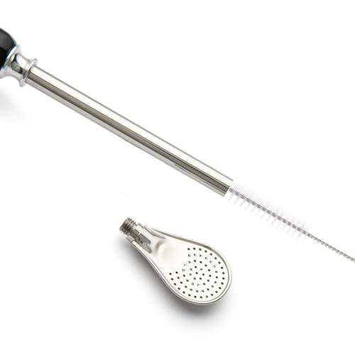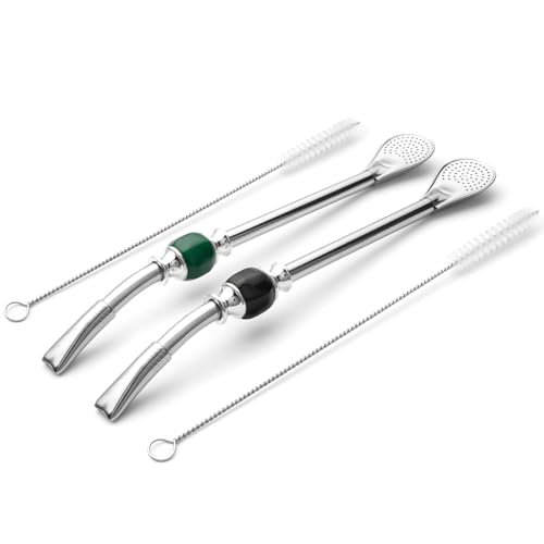 Cuopru - شفاطات لمشروب المتة مصنوعة من الفولاذ المقاوم للصدأ مع حافظة وفلتر برأس قابل للإزالة وخرز ملون وفرشاة للتنظيف من كوبرو (لون أسود وأخضر)