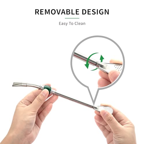 - 【التصميم الرئيسي لبومبيلا ميت】: تتضمن هذه البومبيلا خرزة جميلة في منتصف المقبض مما يجعل الماصة سهلة الإمساك دون أن تحرق نفسك وأنت تشرب يربا ميت - مصنوعة من الستانلس ستيل 18/8 الآمن غذائيًا بدرجة 304، مع فلاتر شاي قابلة للفصل أسهل في التنظيف. وهو تصميم قابل لإعادة الاستخدام ومتين وصديق للبيئة.