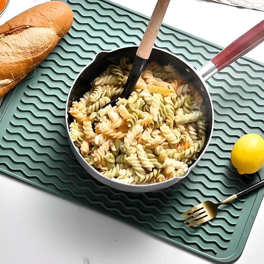 - متعددة الاستخدامات في كل ركن من المنزل: رغم كونها مثالية للمطبخ، إلا أن الحصيرة تصلح أيضًا في الحمامات، غرف الغسيل، أو حتى في العربة أثناء السفر. يمكن استخدامها كقاعدة للمكواة، أو كمساحة لتجفيف عبوات الرضاعة، أو لحماية الأسطح من أدوات الشعر الساخنة.