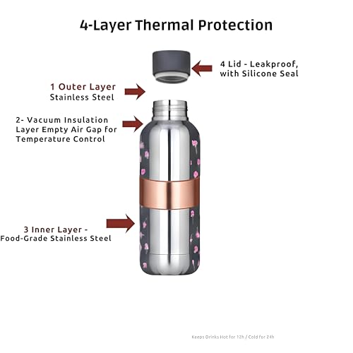 - حافظ على ترطيبك أنيقًا مع زجاجة أنيقة معزولة من الستانلس ستيل بسعة 500 مل تتميز بعزل مزدوج الجدار يحافظ على درجة حرارة مشروباتك لساعات مع منع تكثف السطح.