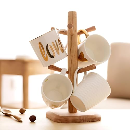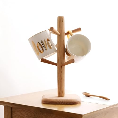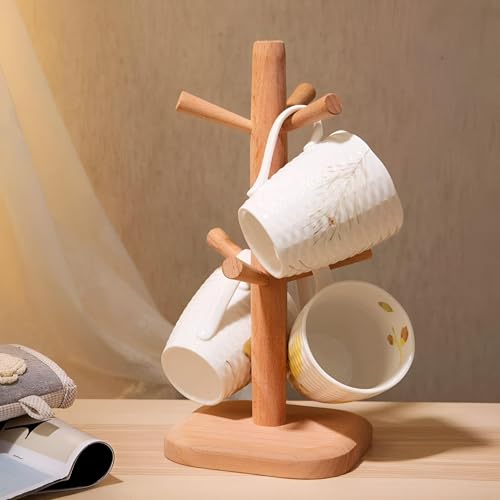 Generic - حامل تجفيف الأكواب - اكتشف الحل الأمثل لتجفيف أكوابك باستخدام حامل الأكواب الخشبي الإبداعي هذا الذي يتميز بتصميم فريد وستة خطافات للتخزين والصرف الفعال.
