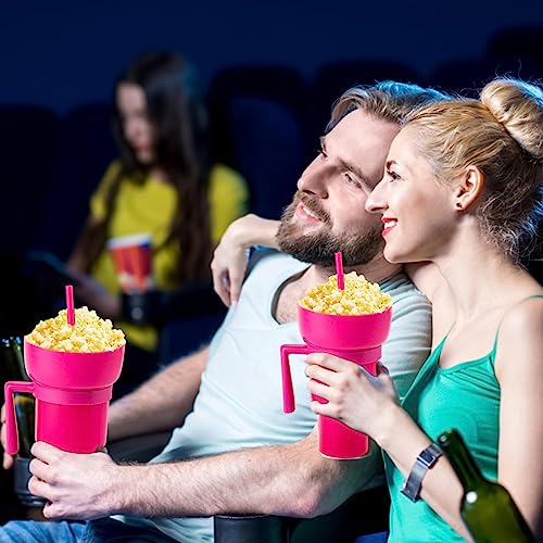 FOCCAR - كوب مع بولة وجبات خفيفة في الأعلى 2 في 1، بولة وجبات خفيفة أعلى كوب مشروب، كوب مشروب محمول مع بولة بغطاء وشفاطة مقاومة للرذاذ والتسرب للبالغين والأطفال للرحلات والسينما والسفر والمنزل