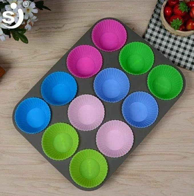 Generic - صينية خبز كب كيك ومافن - قالب مكون من 12 قالب، مصنوعة من الفولاذ المقاوم للصدأ، متوفرة بألوان متعددة