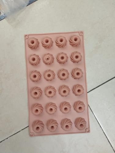 - التصميم: قالب سيليكون بتصميم حلزوني مميز يحتوي على 24 تجويف للكب كيك