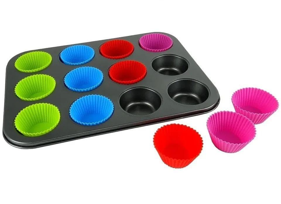 - صينية كب كيك مع قوالب سيليكون 1 × 2 (صينية + 12 قالب فقط) *احصل عليها من ايجل شوب.
