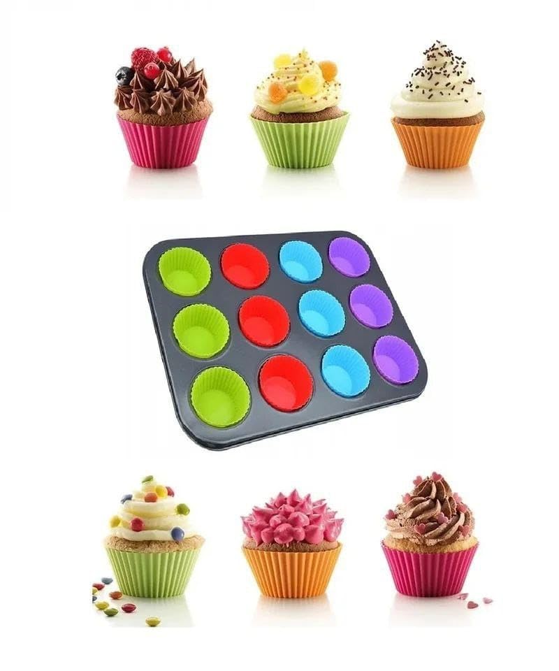 Generic - صينية كب كيك مع قوالب سيليكون 1 × 2 (الصينية + 12 قالب فقط)، احصل عليها من متجر ايجل شوب