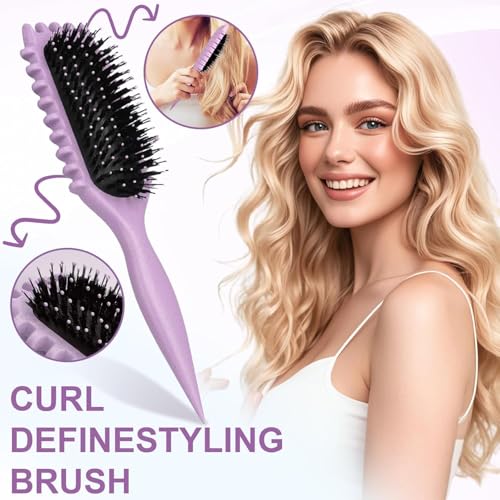 SNS SECRET NAILS SYSTEM - فرشاة تحديد الشعر الكيرلي - طقم فرشاة كيرلي 3 في 1 مع فرشاة فك تشابك مجدافية، وفرشاة مرنة بفتحات تهوية، ومِشط لرفع الجذور - للاستخدام الرطب/الجاف - ألوان وأشكال متعددة (أجواني، فرشاة تحديد التجعيد)