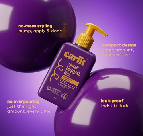 Curlit - سائل من كيرليت للشعر المجعد 200 مليلتر يرطب ويقاوم التجعد ويمنح اللمعان، يحتوي على فيتامين E، خالٍ من السيليكون وبدون شطف لفك التشابك