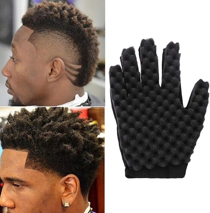 Generic - قفازات اسفنجية مجعدة سحرية لتمويج الشعر للحلاقين وفرشاة الشعر للرجال ذوي البشرة السمراء (قطعة واحدة)