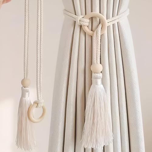 Generic - حوامل ستائر، أربطة بيضاء عصرية مع أبازيم خشبية، لديكور غرفة النوم، مجموعة من 2 قطعة