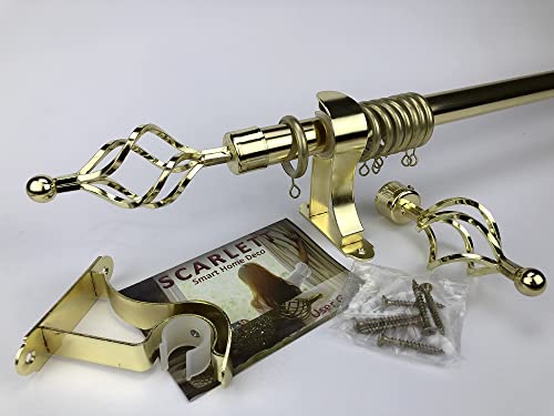 Generic - طقم قضيب ستارة فردية، مجموعة انابيب سكارليت معلقة وفردية وسهلة التركيب، تتضمن جميع ملحقات التعليق مع وصلة وديكور شمعة وتاج (410 سم الى 270 سم، ذهبي)