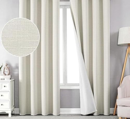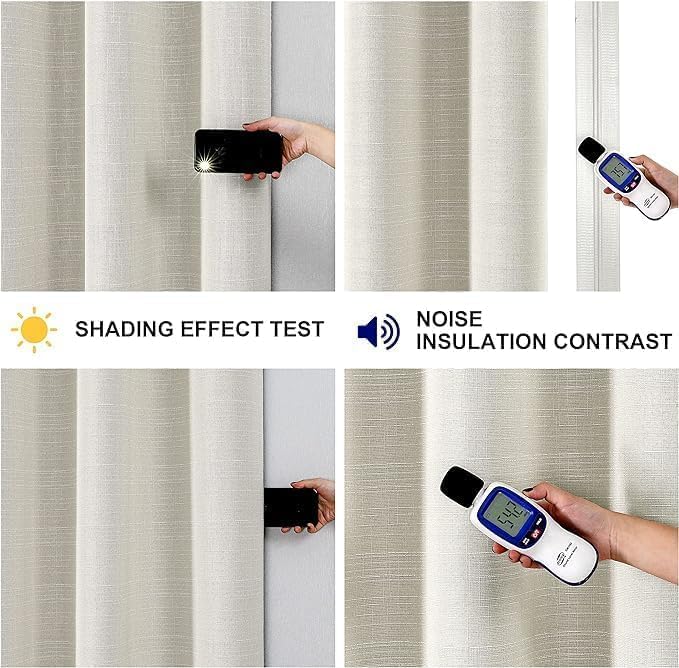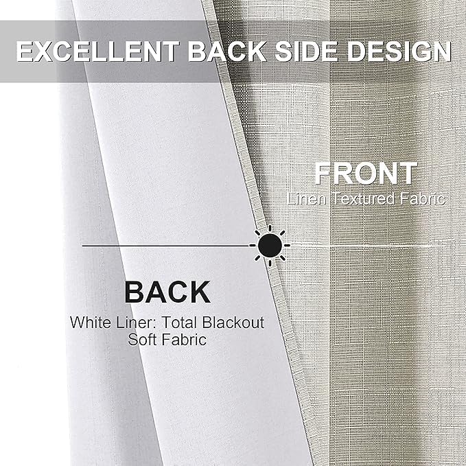 Curtains and Rods - ستائر وقضبان معتمة جاهزة للتركيب من الكتان بنسبة 100%، مقاس 140 سم × 270 سم، بيج