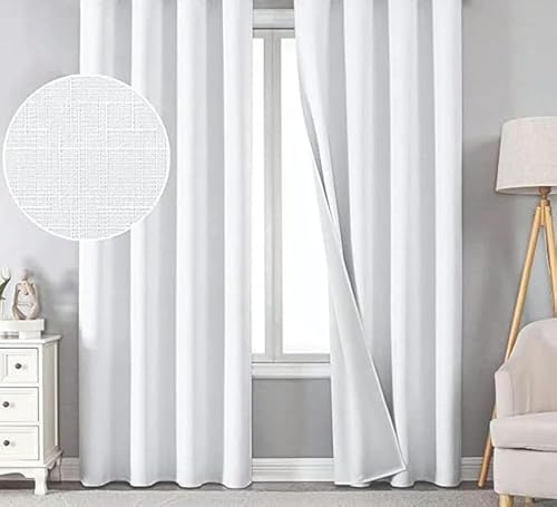 Curtains and Rods - ستائر للتعتيم بنسبة 100% جاهزة للتركيب بطبقة خارجية من الكتان، مقاس 1.40 متر × 2.70 لون أبيض، كيترنس اند رودز، بطانة، سادة