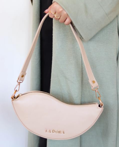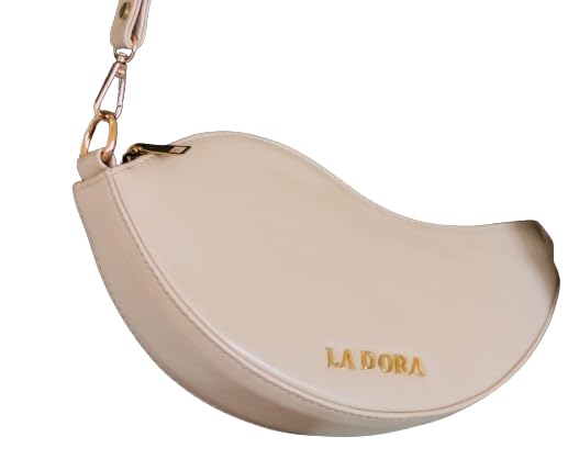 Generic - شنطة كروس منحنية، جلد بيج، قطع معدنية ذهبية