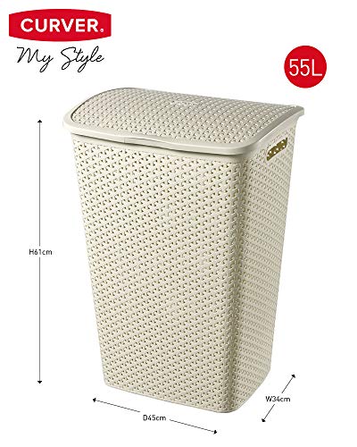 Curver - سبت غسيل بلمسة من الراتان سعة 55 لتر من كيرفر ماي ستايل، لون أبيض فينتاج