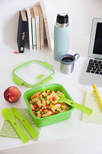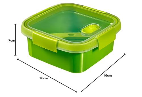 Curver - سمارت تو جو - حاوية تخزين مربعة لانش بوكس مع سكين، وشوكة، وملعقة - لون اخضر، 0.9 لتر، من كيرفر