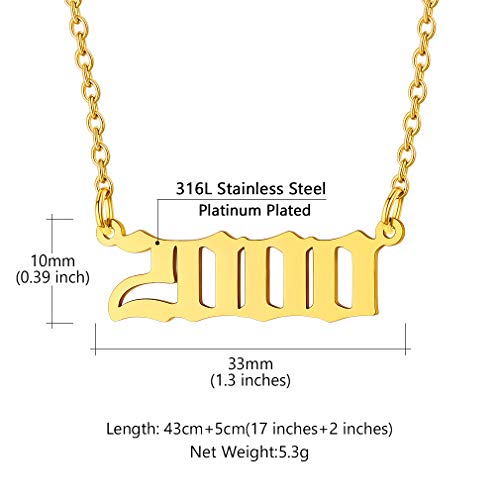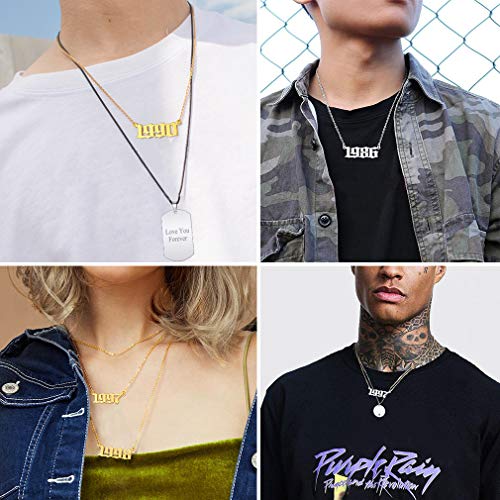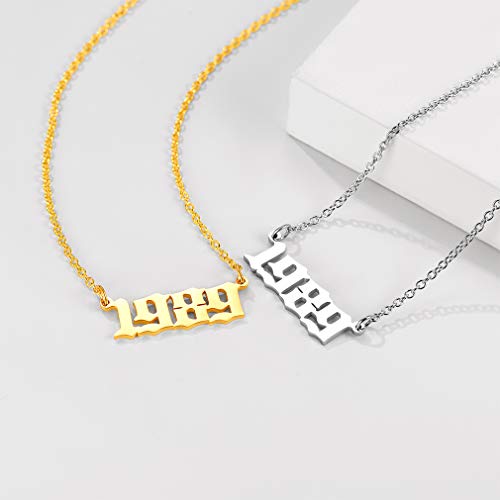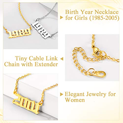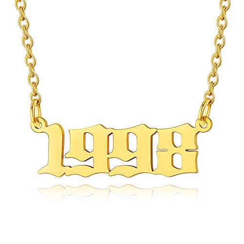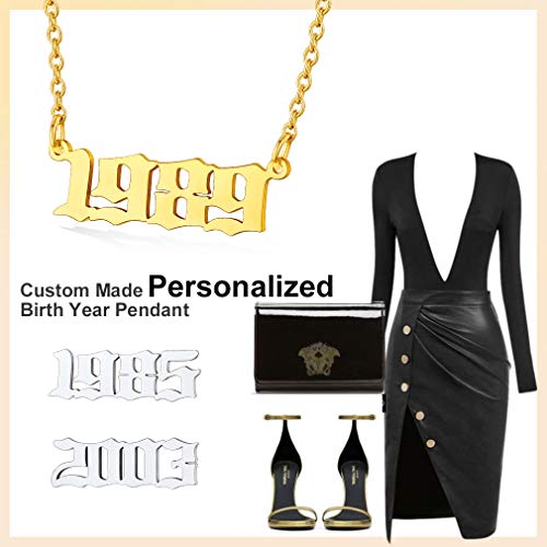 Custom4U - كوستوم 4 يو قلادة رقم سنة الميلاد، 1985-2005، يمكن تخصيصها، مع سلسلة رولو 43+5 سم، مطلية بالذهب عيار 18 قيراط/البلاتين، هدايا للنساء والفتيات والامهات وعيد الميلاد